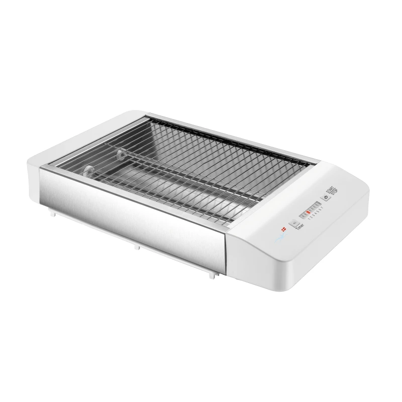 Albaline Alba brødrister i klassisk design. En flad brødrister med plads til 4 almindelige skiver brød. 2 varmelegemer og timerfunktion med 7 trin.