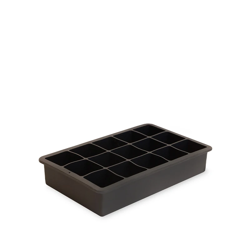 Isterningebakke i silikone fra Aldente med plads til 15 isterninger, der måler 3,2 cm. Selve isterningebakken måler 18,7 x 11,8 x 3,5 cm.