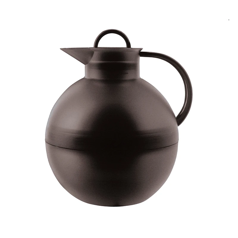 Den klassiske runde Alfi kugle termokande kommer nu også i denne smukke frost sort, som uden tvivl vil pynte ethvert kaffe- eller tebord. Kanden har termoeffekt og det vil sige, at der kan komme enten varmt eller koldt i kanden. Termokanden holder varmt i ca. 12 timer og koldt i ca. 24 timer. Kanden rummer 0,94 liter, og kan aftørres med en blød klud, hvis der kommer lidt snavs på den. Det er meget vigtigt at vedligeholde selve kanden indvendig ved jævnlig rengøring med en blød kanderenser eller lignende. Kanden har en dobbeltvægget Alfidur-indsats i isolerende og hærdet vakuum-glas. Kuglekanden som mange også kender den som blev designet af Ole Palsby i 1985, hvor han navngav den Modern Classic No.1. En klassiker er kuglekanden uden tvivl – den er faktisk det mest solgte termokandedesign i verden, og derfor har den også været udstillet på MOMA i New York (Museum og Modern Art).