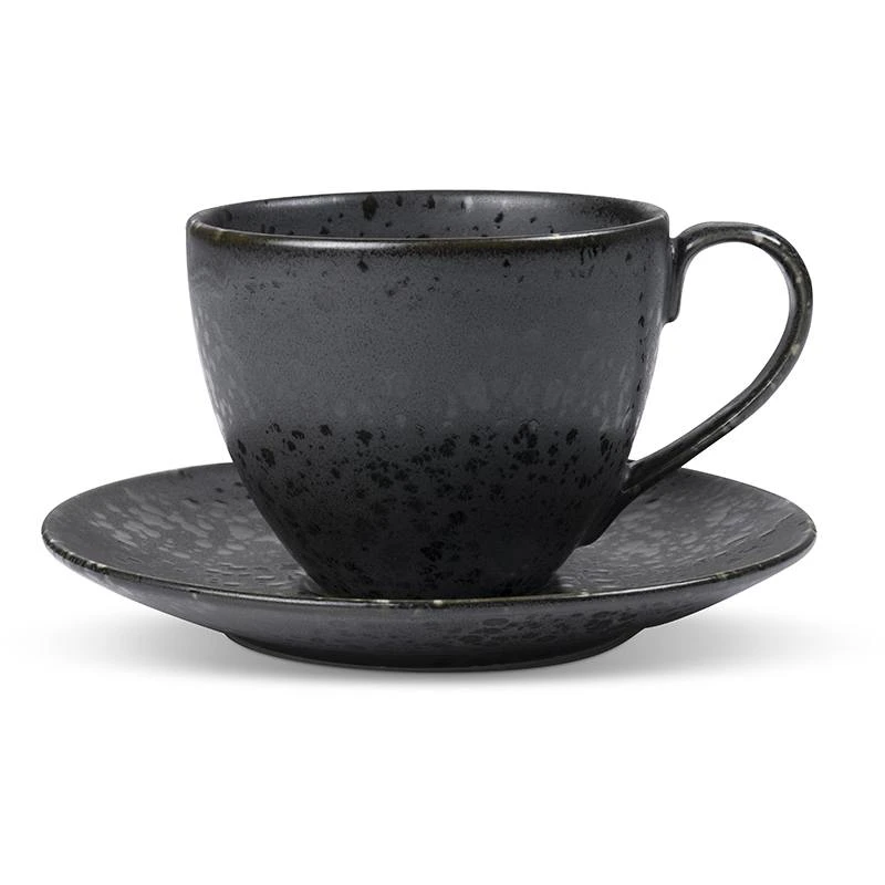 Bitz cappuccinokop med underkop i mat, sort stentøj med reaktiv glasur. Koppen er 6 cm høj og rummer 24 cl så den er perfekt til nydelse af din café au lait, cappuccino og andre kaffe-favoritter. Brug den fx også til servering og anretning.