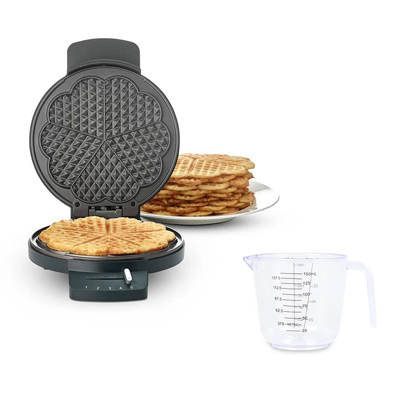 Bag de lækreste sprøde vafler, og forkæl hele familien med en sød overraskelse. Vaffeljernets plader har en diameter på 20 cm, og producerer fem hjerteformede vafler ad gangen. Non-stick belægningen gør, at vaflerne nemt slipper. Derudover har vaffeljernet justérbar temperatur, lysindikator samt varmeisolerende håndtag. Sammen med vaffelmaskinen får du også: en lille målekande fra Aldente hvor du nemt og nøjagtigt kan afmåle den mængde, du har brug for. På den ene side er der mål i ml og oz, og på den anden side vægtangivelse for sukker og mel.