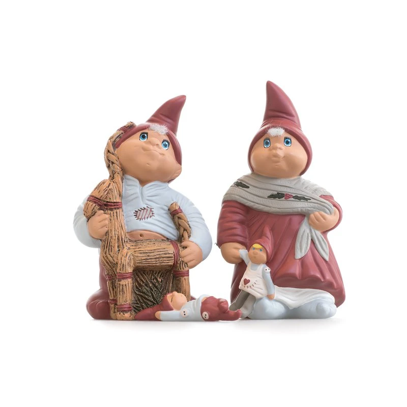 Tina Strikkeglad er en dejlig nisse med mange evner. Hun er kreativ, glad og sjov, god til at lave mad og elsker at strikke. Tøjdukkerne Nisseline og Nissenøv har hun selv lavet.