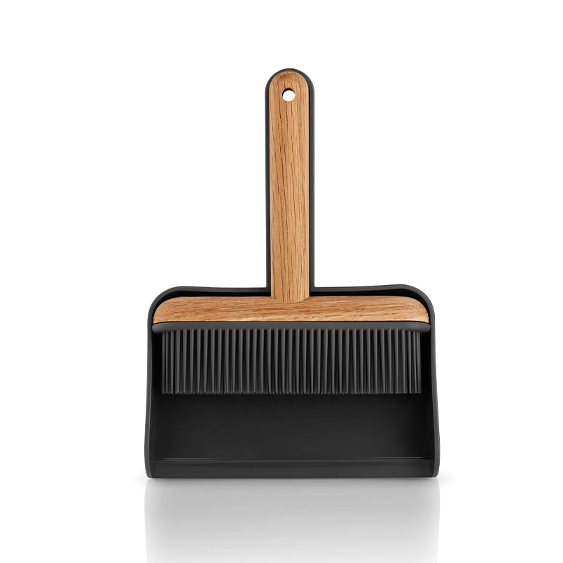 Det ultimative makkerpar til din rengøring, der kræver 0% strøm: en kost og en fejebakke – mere simpelt bliver det ikke. Ikke desto mindre, er det et uundværligt makkerpar til den lette hverdagsrengøring, når du lige har tabt lidt havregryn eller andet spændende på gulvet. Det elegante makkerpar fra Eva Solo er udstyret med silikonehår, som virkelig er lidt en genistreg, da det betyder, at du kan feje vådt og tørt op. Fejebakken er lavet med en skarp kant, så støv og snavs let fejes op i bakken. De smarte silikonehår skylles blot under varmt vand, så kosten holdes ren og hygiejnisk. Kosten sættes blot ind i fejebakken, når den ikke længere er i brug. Selve skaftet på kosten er lavet i FSC-certificeret egetræ, hvilket er med til at bryde det minimalistiske look med lidt varme.