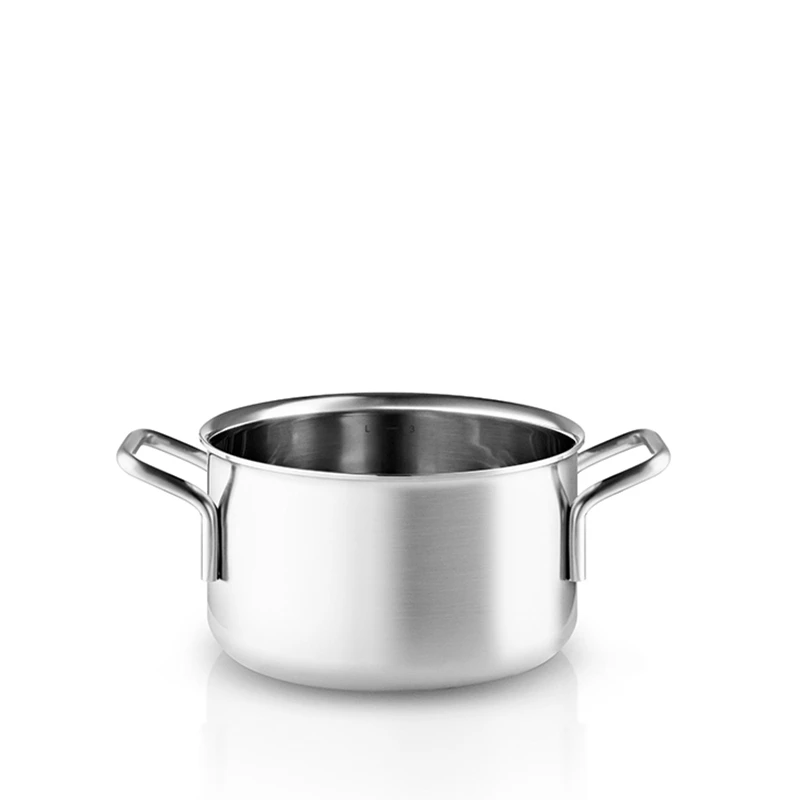 Eva Trio Multi serien har den optimale varmefordeling takket være 3-lags konstruktionen med aluminiumskernen, der er i både bund og sider på gryden, så hele gryden varmes op.
