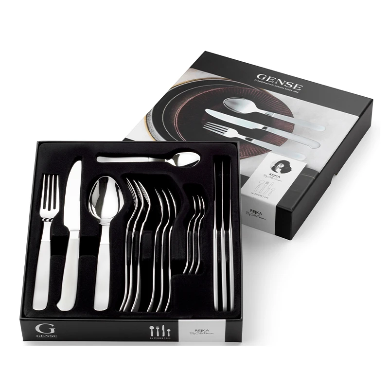 Rejka er et bestik med stor personlighed. Kombinationen af matte og skinnende overflader giver bestikket en særlig elegance. Inspirationen er hentet fra traditionelt nordisk designsprog med detaljer, der medvirker til at give en personlig borddækning. Lavet af rustfrit stål med matpoleret skaft og blank front. Tåler opvaskemaskine.