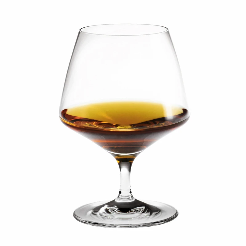 Holmegaard Perfection Cognacglas 36 cl. Som med alle andre glas i Perfection serien er der også her den tydelige skænkelinje. Glasset har den rigtige form for at din yndlings cognac kan udvikle duft- og smagsnuancerne. Cognaccen tempereres nænsomt ved varmen fra hånden. Perfection serien er designet af Tom Nybroe