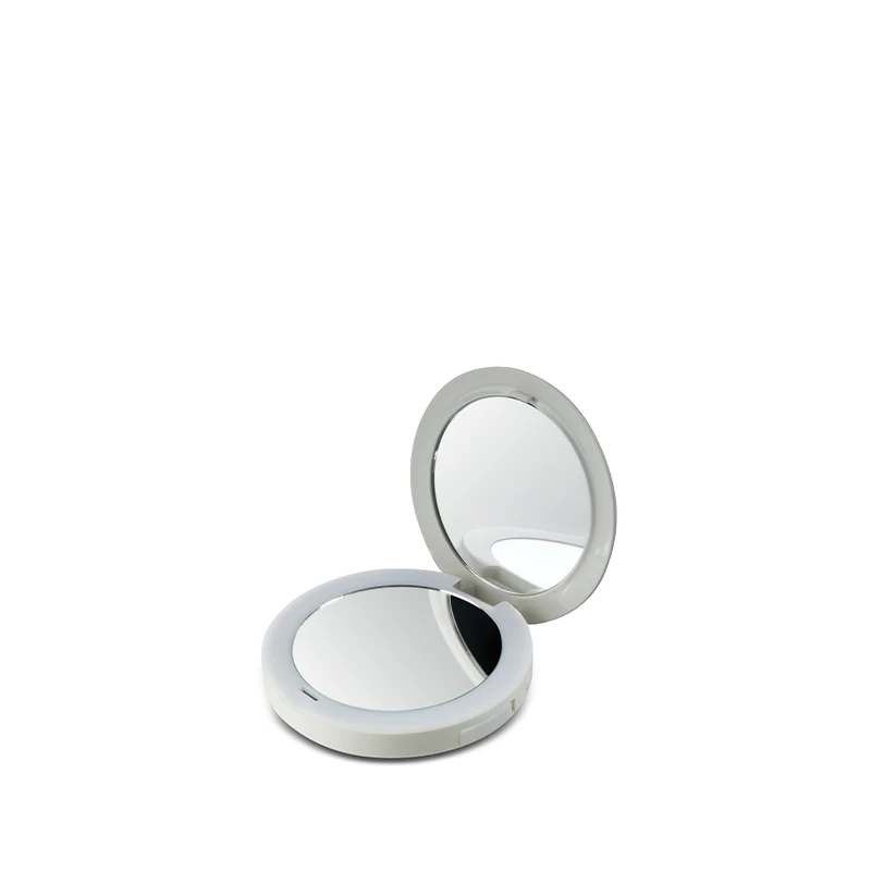 Homedics har lavet dette genopladelige makeup-spejl eller rejsespejl i lommeformat, der har 2 spejle: 1x forstørrelse på den ene side & 2x forstørrelse på den anden. LED-lyset hjælper i mørke situationer, hvis makeuppen lige skal fikses, eller dine øjenbrynshår skal plukkes. Den kan let genoplades med den tilhørende ledning. Derudover fungerer spejlet også som en powerbank, så du let kan oplade din mobil eller andet på farten. Opladekapaciteten ligger på 300 mAh. Medbring den i tasken eller jakkelommen og lad den hjælpe dig med de små, daglige touch-ups.