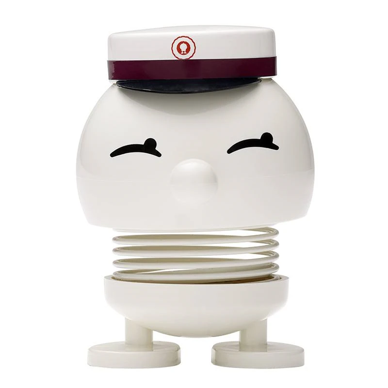 Kun hos Kop & Kande – den klassiske Hoptimist student i hvid. Der medfølger klisterark med mørkerød, mørkeblå, lyseblå og lilla stribe til huen – dækker STX, HHX, HTX, HF og HG Studentertiden er et minde for livet, derfor er de glade Hoptimist studenter en fantastisk gaveidé. Med smilende øjne kigger pigen Bimble til siden i sin fine kjole som den lange fjeder repræsenterer. Højde7 cm Diameter 5 cm