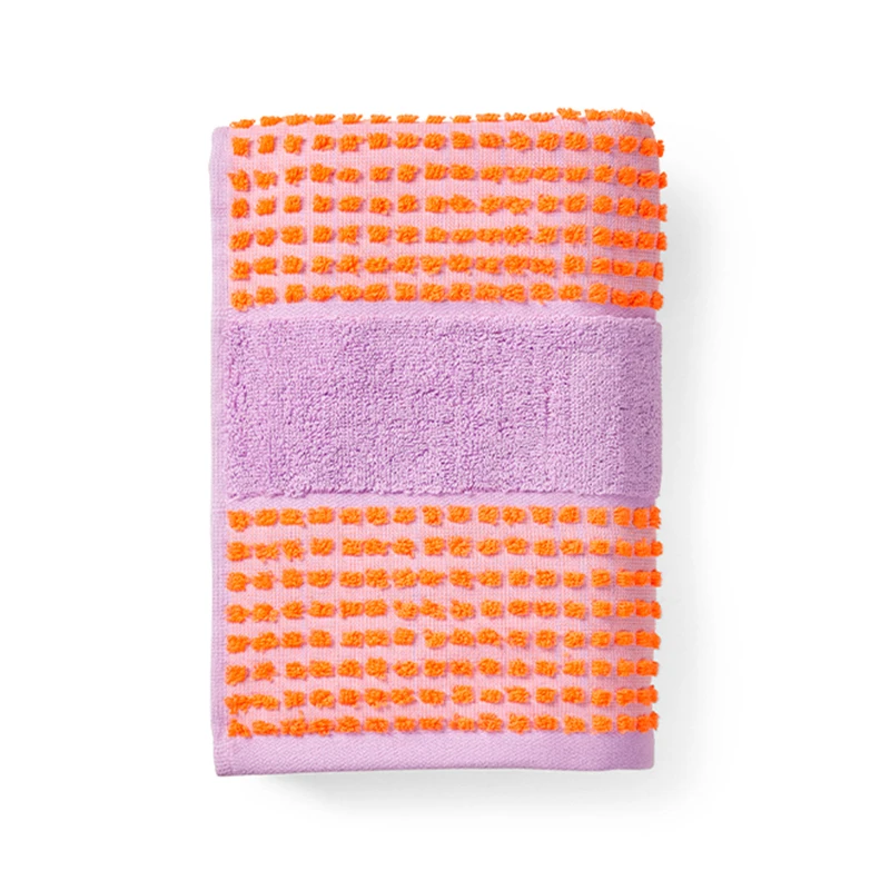 Det smørbløde Check-håndklæde fra Juna er lidt hverdagsluksus i 100% økologisk bomuld, der både er OEKO-TEX-mærket samt GOTS-certificeret. Det bløde håndklæde er ideelt til at smyge sig ind i efter en lækkert bad, og så er det ovenikøbet også ret så flot at have hængende eller liggende foldet sammen. Farvekombinationen er her lavendel og fersken, og den giver sådan et skønt farvepust til badeværelset. Giv dit badeværelse nyt liv med de nye vaskeklude og håndklæder fra Junas Check serie.