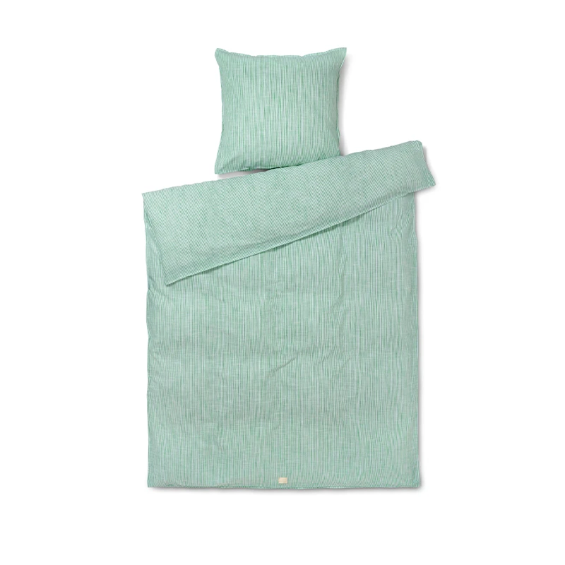 Serien Monochrome er skabt i 100% økologisk bomuld og vævet på en måde, der giver stoffet et råt og casual look inspireret af naturens strukturer med en helt speciel overflade, der føles himmelsk mod huden. Det nyeste sengesæt fra Monochrome Lines kommer i en grøn farve, og den særlige vævning med en ujævn tråd skaber unikke variationer i stoffets struktur og gør farven levende. Den afdæmpede farve kombineret med hvide striber giver Monochrome Lines et klassisk udtryk, der også spiller smukt sammen med puder, tæpper og sengetøj fra de andre JUNA-serier, så du kan mikse og matche på kryds og tværs. Monochrome Lines er ikke bare en smuk tilføjelse til soveværelset, der giver en blød og god nats søvn. Sengetøjet er også GOTS-certificeret og OEKO-TEX®-mærket, så du kan sove trygt og drømme uendelige drømme.