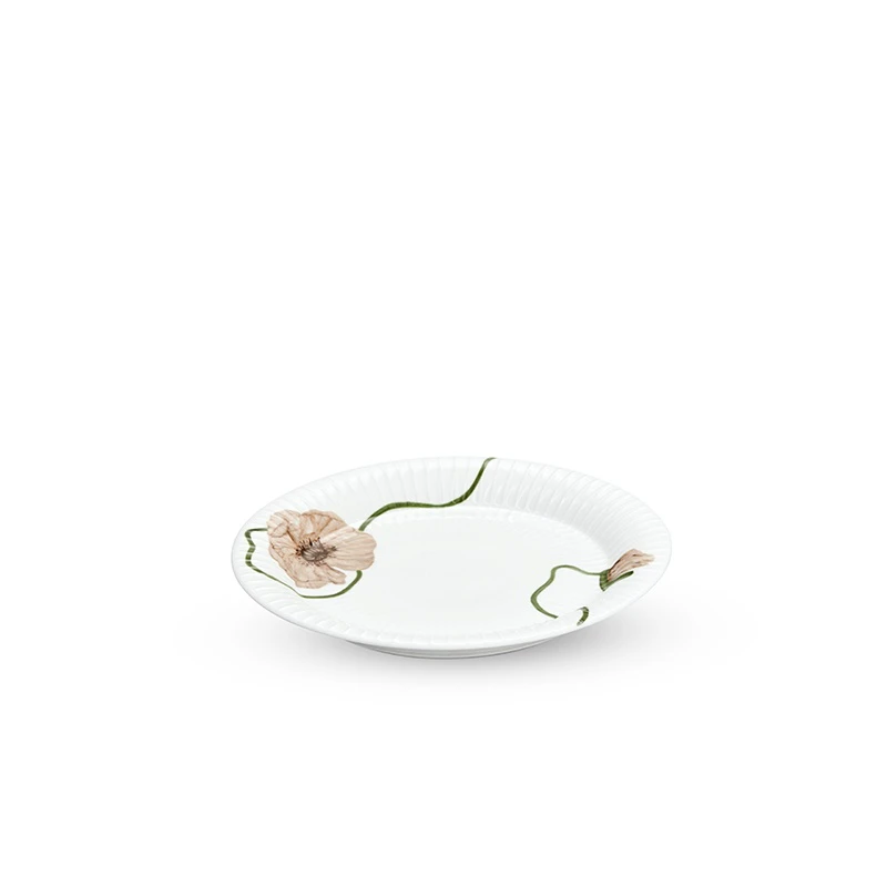 Kähler Hammershøi Poppy tallerken 22 cm. Smukt stel designet af Rikke Jacobsen der har tilføjet det klassiske Hammershøi stel smukke valmueblomster. Stellet har udstråler kreativitet, skønhed og nærhed. Kan fint blandes med det ensfarvede Hammershøi stel.