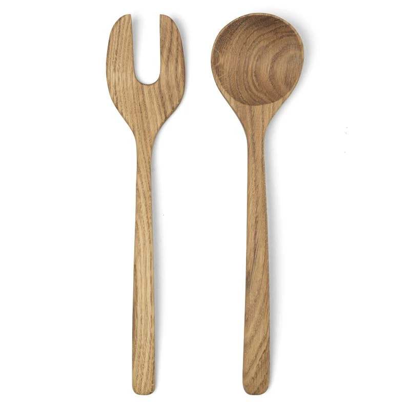 Kay Bojesen salatbestiksæt Menageri er fremstillet i det smukke eg, hvilket giver et blødt og neutralt look. Samtidigt er det utroligt behageligt at have i hænderne. Menageri- serien blev oprindeligt designet i 1940’erne hvor Kay Bojesen begyndte sin produktion af træprodukter til husholdningen. Den gode længde på 29 cm gør at det er nemt at komme til fx salat og bestikket ikke vælter ned i skålen. Fremstillet i FSC-certificeret egetræ.
