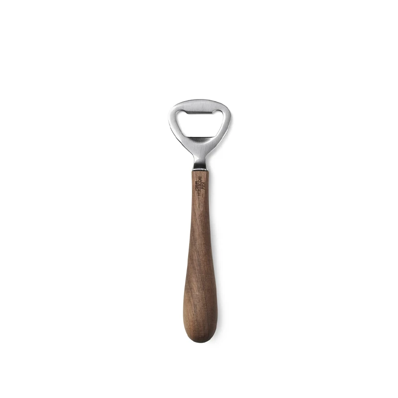 I Menageri-serien kommer nu en oplukker og en proptrækker i mørk valnød, der giver et eksklusivt look. Begge dele er smukt forarbejdede og rare at røre ved, så du både får en æstetisk og en taktil oplevelse, når du åbner en flaske. Grebet er lækkert og både proptrækker og oplukker ligger godt i hånden. Du både ser og fornemmer tydeligt Kay Bojesens velkendte runde og bløde formsprog, der er hans signatur. Samlere og kendere vil kunne genkende både oplukkeren og proptrækkeren, der begge er originale designs fra Kay Bojesens hånd, der nu genintroduceres i mørk valnød, som står i flot kontrast til det blanke stål. Et lille diskret logo er præget i træet, der er behandlet med olie. Det bringer årerne i træet frem og gør træet slidstærkt.