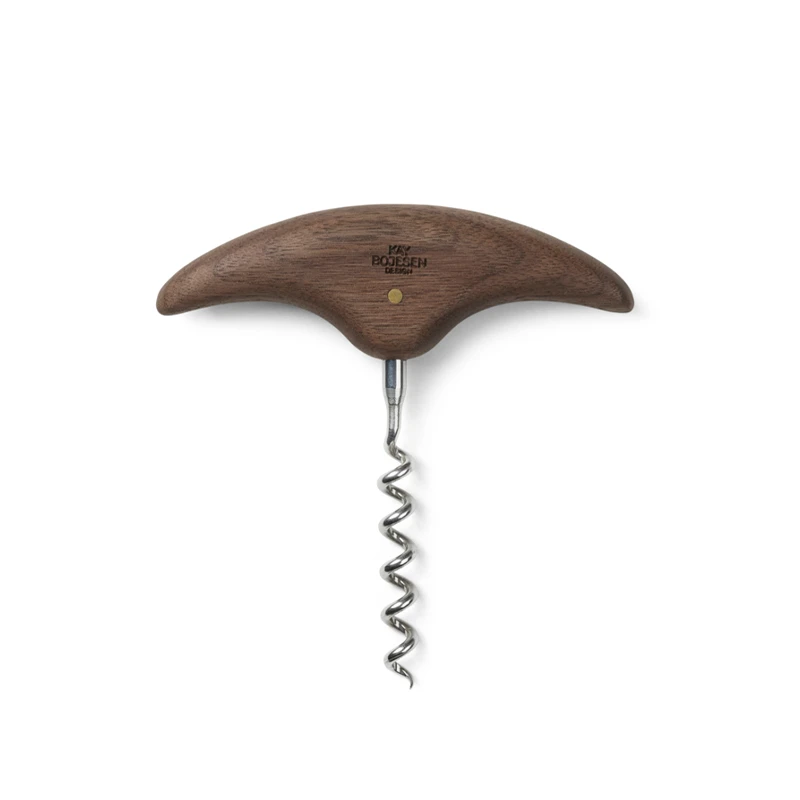 I Menageri-serien kommer nu en oplukker og en proptrækker i mørk valnød, der giver et eksklusivt look. Begge dele er smukt forarbejdede og rare at røre ved, så du både får en æstetisk og en taktil oplevelse, når du åbner en flaske. Grebet er lækkert og både proptrækker og oplukker ligger godt i hånden. Du både ser og fornemmer tydeligt Kay Bojesens velkendte runde og bløde formsprog, der er hans signatur. Samlere og kendere vil kunne genkende både oplukkeren og proptrækkeren, der begge er originale designs fra Kay Bojesens hånd, der nu genintroduceres i mørk valnød, som står i flot kontrast til det blanke stål. Et lille diskret logo er præget i træet, der er behandlet med olie. Det bringer årerne i træet frem og gør træet slidstærkt.