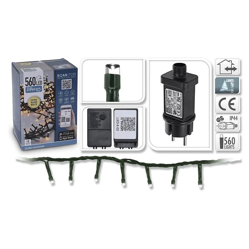 Lyskæde med 560 LED lys, som kan bruges både inde og ude.