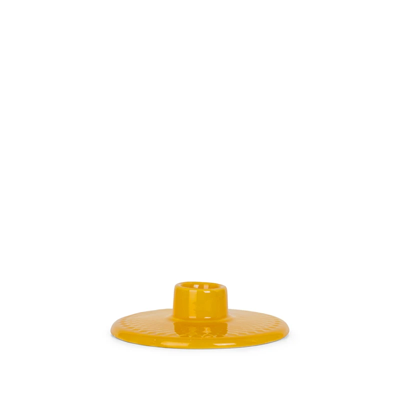Som supplement til de nye fade og Rhombe Color-seriens øvrige dele lanceres også matchende lysestager i grøn, gul og rosa, der fuldender og forener form, funktion og elegance. Tænk kreativt og brug ikke kun lysestagerne på spisebordet, men også rundt omkring i boligen på for eksempel sofabordet, natbordet eller det lille sidebord. Brug dem både i hverdagen, og når der kommer gæster på besøg – så bliver livet lidt mere farverigt. Som alle dele i Rhombe Color-serien har lysestagerne det kendte rhombe-mønster, der både kan ses og mærkes. Det træder smukt frem gennem den blanke glasur, der giver en flot finish.