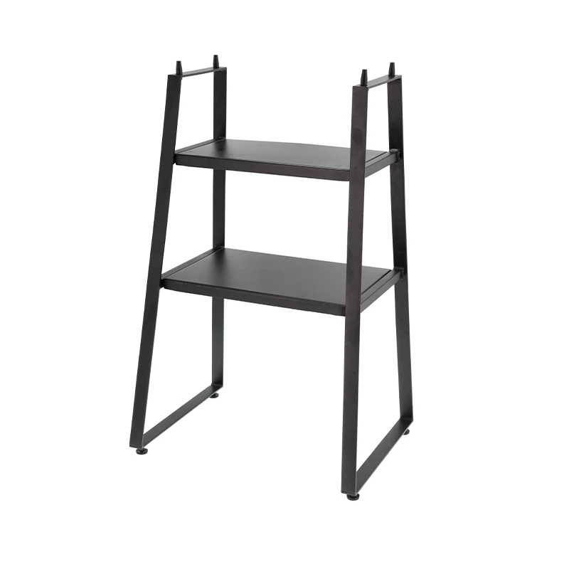 Stativ, bord og reol i et – Fremstillet i pulverlakeret stål.
