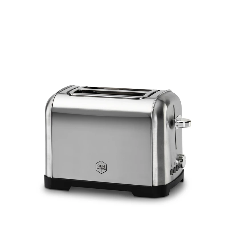 Brødrister fra OBH Nordica med trinløst justerbar ristningsfunktion, high rise-funktion og automatisk centrering.