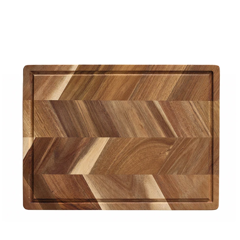 Det smukke skærebræt med saftrille og sildebenmønster kan ikke kun bruges i køkkenet, men er også en smuk tilføjelse til servering af tapas eller pizza. Det er lavet af akacietræ, som giver det et klassisk look og en god kvalitet. Vi anbefaler at behandle skærebrættet med en egnet og fødevaregodkendt olie. Vask den i hånden og tør den grundigt i et viskestykke og lad den lufttørre, inden du stiller det væk. Tåler ikke opvaskemaskine.