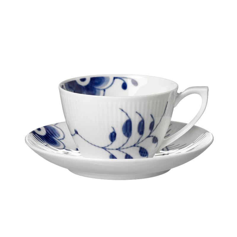 Royal Copenhagen Blå Mega Riflet Kop Og Underkop