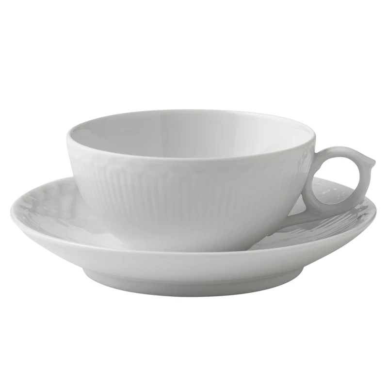 Royal Copenhagen Hvid Halvblonde Kop Med Underkop 20 Cl