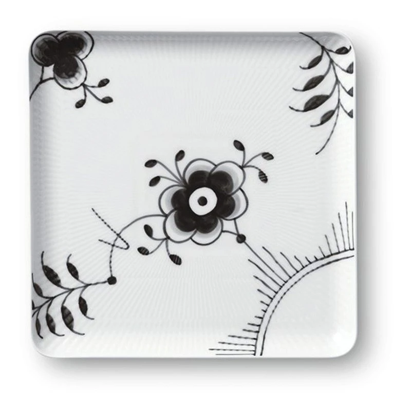 Royal Copenhagen Sort Mega Riflet Firkantet Tallerken 20 Cm