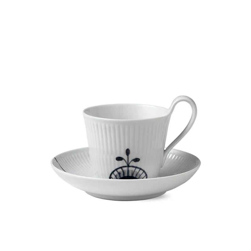 Royal Copenhagen Sort Mega Riflet. Håndmalet højhankskop medunderkop.24 cl.