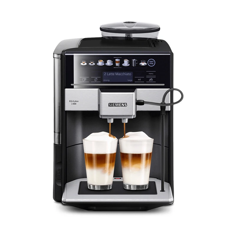 Fuldautomatisk kaffe-/espressomaskine med det smarte og brugervenlige coffeeSelect display fra Siemens. Maskinen brygger op til 2 kopper kaffe ad gangen. På det store display får du følgende smagfulde valgmuligheder: Espresso, Espresso Macchiato, Café Cortado, Americano, Cappuccino, Flat White, Latte Macchiato, Filterkaffe, mælkeskum eller varmt vand til tedrikkerne. Du kan også brygge en helt almindelig kop filterkaffe, hvid det er det, du ønsker. Maskinen dosere selv den rette mængde mælk til de kaffevarianterne, der anvender mælk. Du kan gemme dine individuelle kaffepræferencer, så du nemt får den perfekte kaffe hver gang. Nem rengøring af både kaffesystem og mælkebeholder takket være autoMilkClean, som automatisk rengøre beholderen ved hjælp af damp efter hver brug – så hygiejnen er i top altid. Derudover er der indbygget fuldautomatisk rengørings- og afkalkningsprogram samt daglig rengøringsprogram når maskinen tændes og slukkes. Den keramiske kværn sikrer lavere lydniveau, og ødelægger/ brænder ikke bønnerne. Sensoflow er et elektrisk varmelegeme som sikrer hurtig opvarmning og den rette temperatur og smag. Der er separat beholder til malet kaffe. Desuden har espressomaskinen auto-sluk, så du aldrig skal tænke “har jeg mon glemt at slukke kaffemaskinen?”. Maskinen har en aftagelig vandtank med en kapacitet på 1,7 liter samt en bønnebeholder med plads til 300 gram inkl. aromabevarende låg. Siemens tilbyder 100 dages tilfredshedsgaranti på espressomaskiner, hvis du registrerer dit produkt på Siemens hjemmeside indenfor 14 dage efter dit køb.