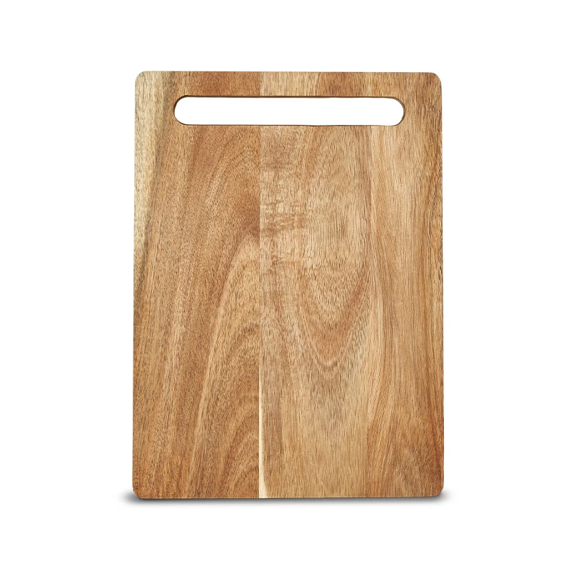 Rektangulært skærebræt i akacietræ med indvendigt udskåret håndtag. Kan med fordel også bruges til servering af smørebrød eller lækre tapas.