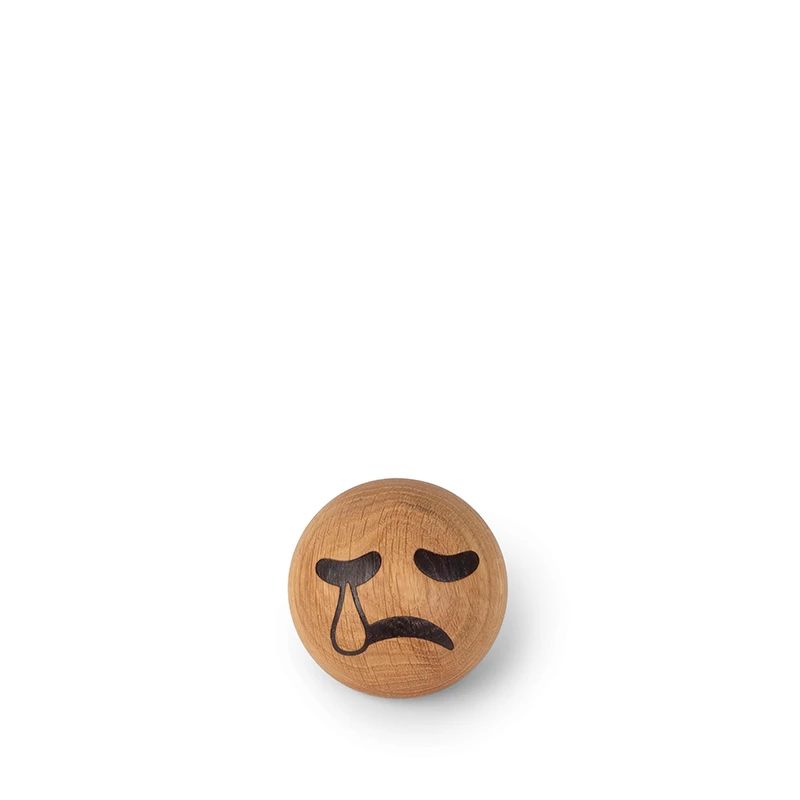 Et symbol på medfølelse eller afsavn i en trækugle! Lad denne fine Spring Copenhagen Sad emoji i træ minde dig om, at det er okay, at være ked af det – det går jo over igen. Giv den til en ven eller en du holder særligt af, som du savner. Spring Emotions serien består af forskellige kærlige, livagtige og opmuntrende emojis. Alle trækuglerne er håndlavede i FSC certificeret træ, og der kan derfor forekomme små variationer i træet. Trækuglerne har alle en flad bund, så de kan stå sikkert uden at trille en tur ned af reolen. Spring Emotions serien er en del af Plant et Træ, så en andel af overskuddet går til at plante træer i Danmark.