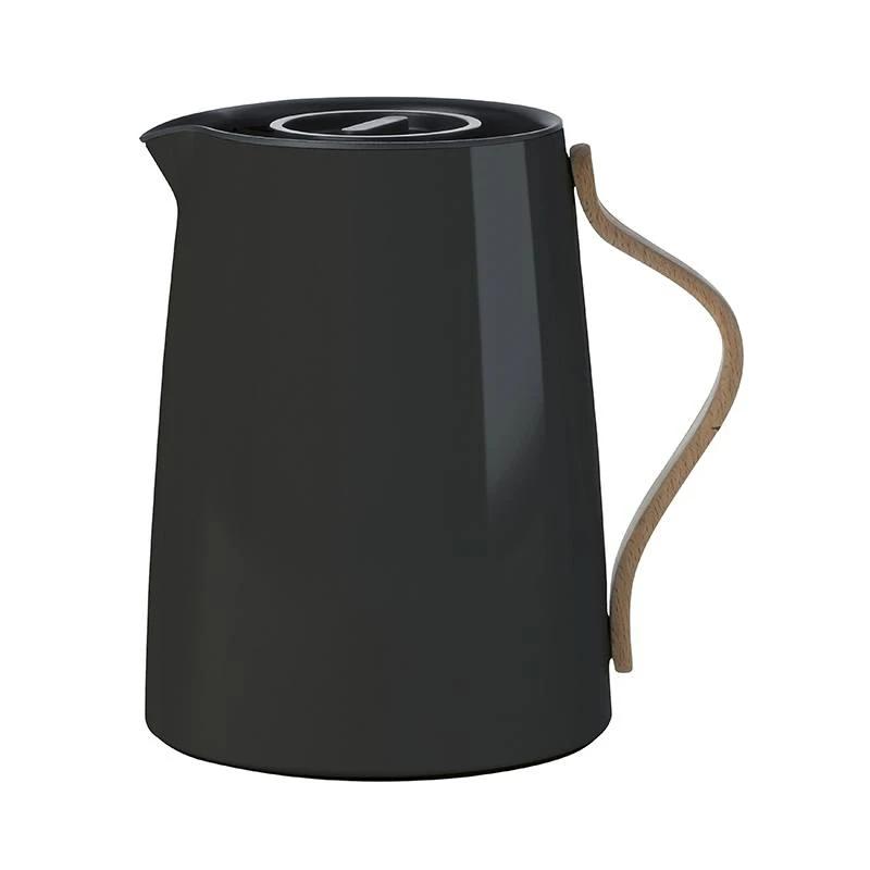 Stelton Emma termokande til te. Rustfrit stål med højglanslakering og bøgetræshank. Sort. 1,0 liter. med stålindsats og smartfilter til enkel tebrygning.