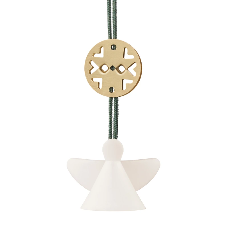 Nordic ornamenterne fås både i keramik og i messing, hvor de klassiske juleobjekter: hjerte, engel og kræmmerhus er nyfortolket.