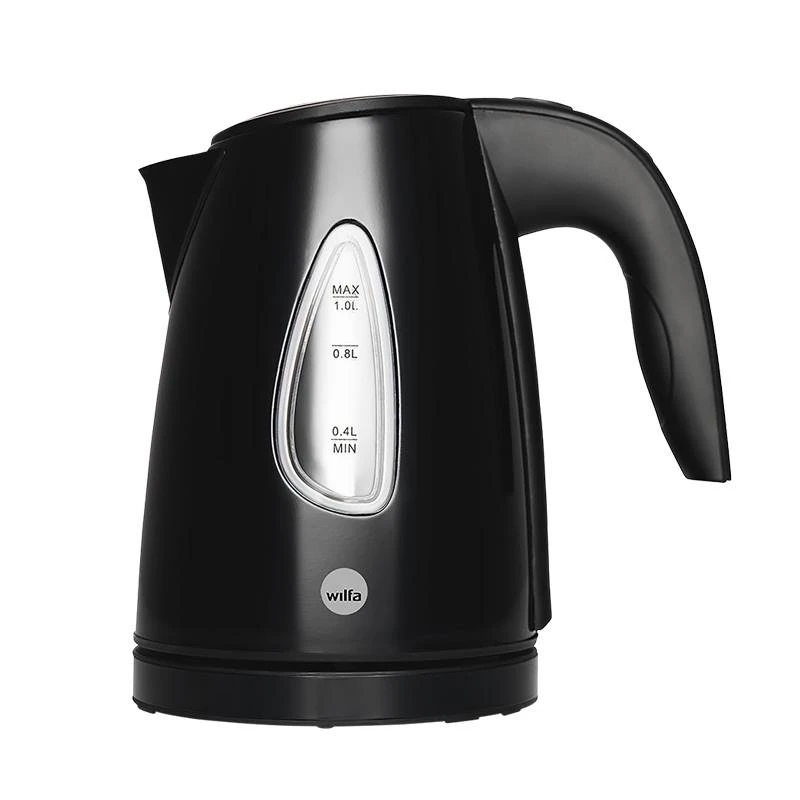 Lille og kompakt. Vandstandsindikator. Skjult varmelegeme. Ledningsopbevaring i fod. 1500 watt. Sort