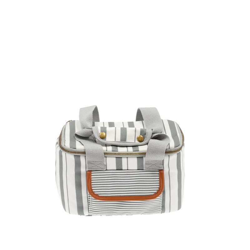 Lille, lækker køletaske i kanvas med et fedt stribe-design – kan rumme 6,5 liter. Kanvas materialet er en blanding af 60% bomuld og 4% polyester på ydersiden, og på indersiden er der et PEVA-for med isolerende PE-skum. Kølestasken har en smart forlomme med velcro til lidt mindre ting, man ønsker at have med sig. Desuden medfølger der også en lille pung med lynlås. Strandtasken/køletasken har to bærehanke og en lang skulderrem. Kølestasken er perfekt at have med på stranden, eller hvor man nu skal hen på tur med lidt lækkert mad og andet forfriskende. Denne køletaske kan rumme 6 dåser sodavand/øl. Husk at det er en god idé at bruge køleelementer i tasken, så indholdet holder sig koldt i længere tid (OBS! disse medfølger ikke). Der kan også købes køleelmenter her på siden eller hos din lokale Kop & Kande butik. Køletasken er ikke egnet til opbevaring af fødevarer uden emballage.